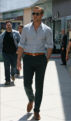 We swoon, we hope and we pray our men will look like Mr. Gosling. He (and his stylist) have nailed men’s style. The fit of his clothes are impeccable. He takes risks, yet always looks comfortable in the clothing. He is wearing his clothes rather than the clothes wearing him. And, swoon again. Okay. Here’s how to add a little of this to your man’s look, ummmm…pronto.