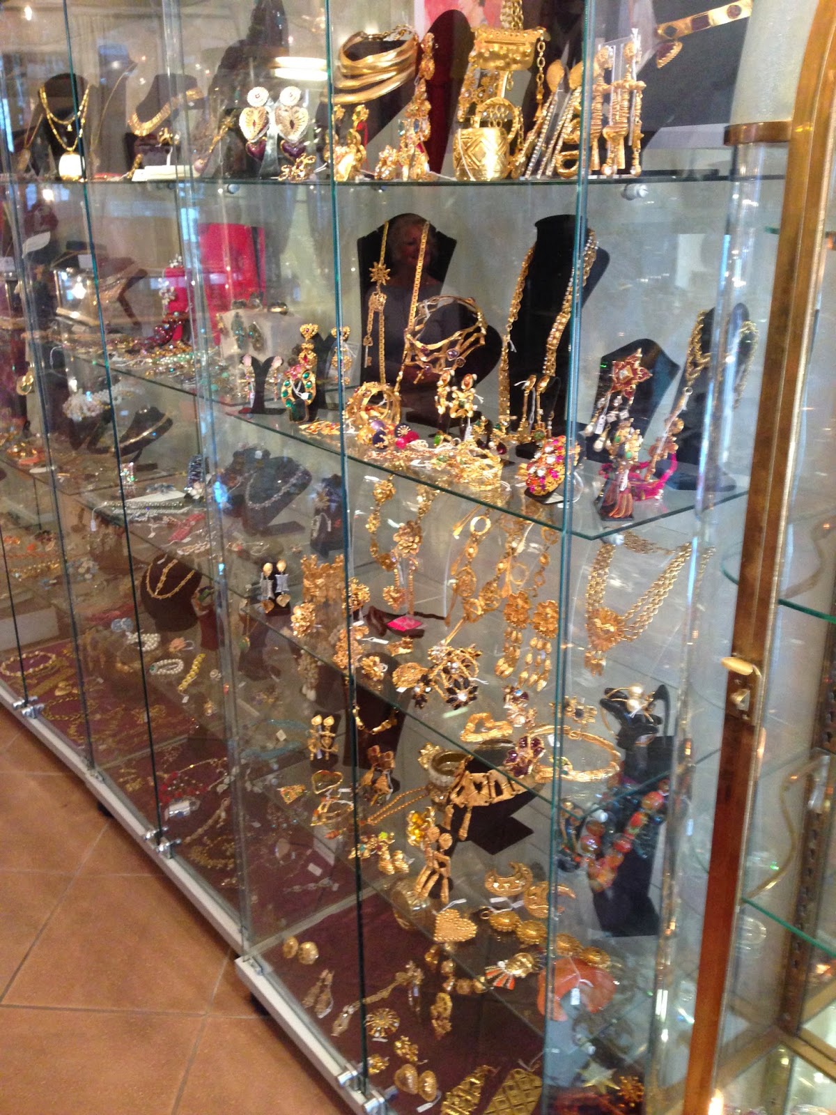 Farther into the shop were case after case of vintage jewelry from the 20’s to present; Chanel, Christian Lacroix, Yves Saint Laurent, Miriam Haskell and so much more. Having a special place in my heart for 80’s jewels, I was in heaven with the