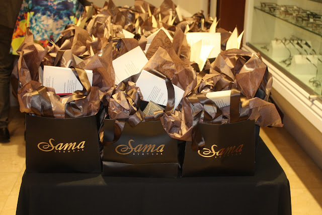 Goodie bags for us containing our beautiful, custom fit sunnies, among other fun. Thank you, Sama Eyewear and The Eye Gallery! |