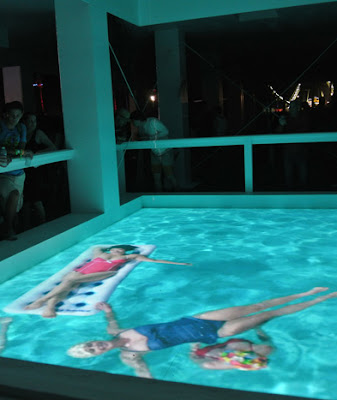 During the day, the Mirage 3D was a plain white mid-century Palm Springs mansion, giving refuge to festival goers from the blazing desert sun and upper 90’s temps. At night, textures and videos were projected onto the building, giving the illusion that a party was taking place inside. I love the reference to the De Stijl art movement in the architecture.