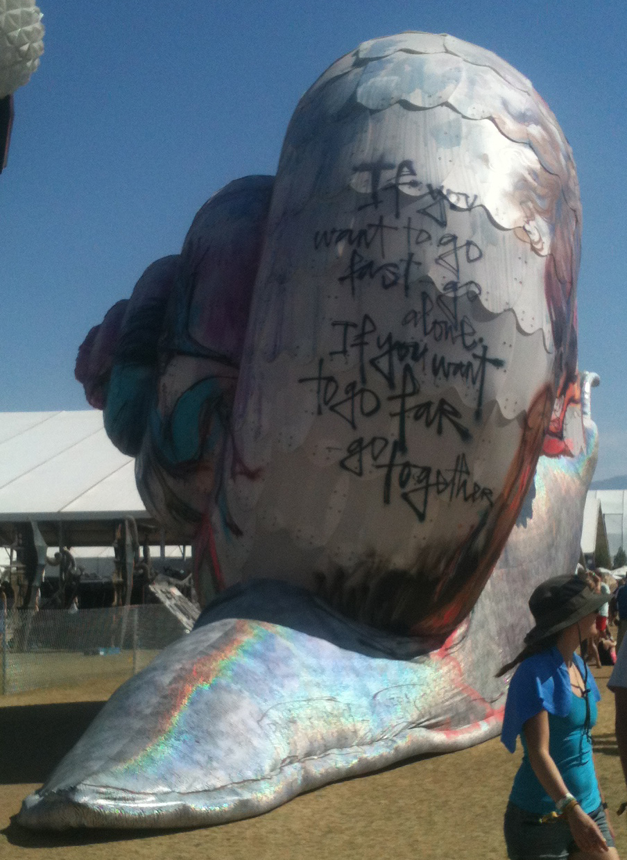 Helix Poeticus, was as interesting as they come. The enormous, slow-moving snail weaved through the crowds for the duration of the weekend. During the day, it left a bubble foam trail, at night the shell glowed like a lantern lighting the path.