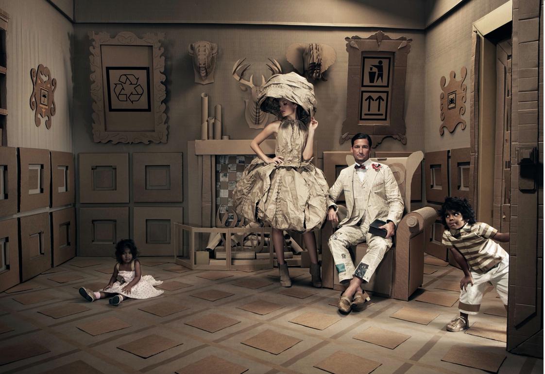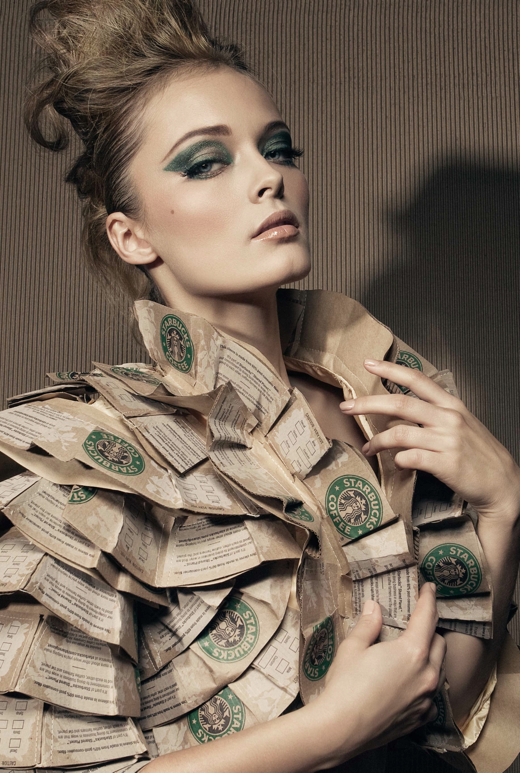Back in March, I had the opportunity to attend the LA Art Show at the Convention Center downtown. Quick to catch my eye were a series of fashion spread portraits taken by multi-media artist, Cristobal Valecillos. Looking closely, I began to notice some interesting details: the photos on the wall consisted of the well-known reuse, reduce, recycle logo, among others and the clothing was all made of…paper? Now, I’ve seen this done before, but there was something about seeing it here, displayed amongst other great pieces of art, that made it stand out in a – swoon-worthy-fashion instead of a burlap-sack-loving-hippie – kinda way. You know? Here, you take a look…
