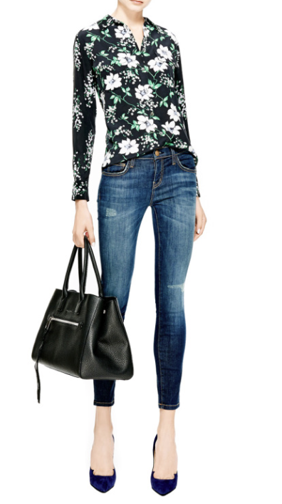 Whatever your budget, be on the lookout for dark grounded floral silhouettes which style easily back to solid black. A top, bottom or coat– a little goes a long way with this trend.
