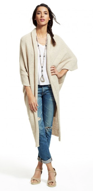 This cardigan has the versatility of being worn long or flipped around as cropped topper.