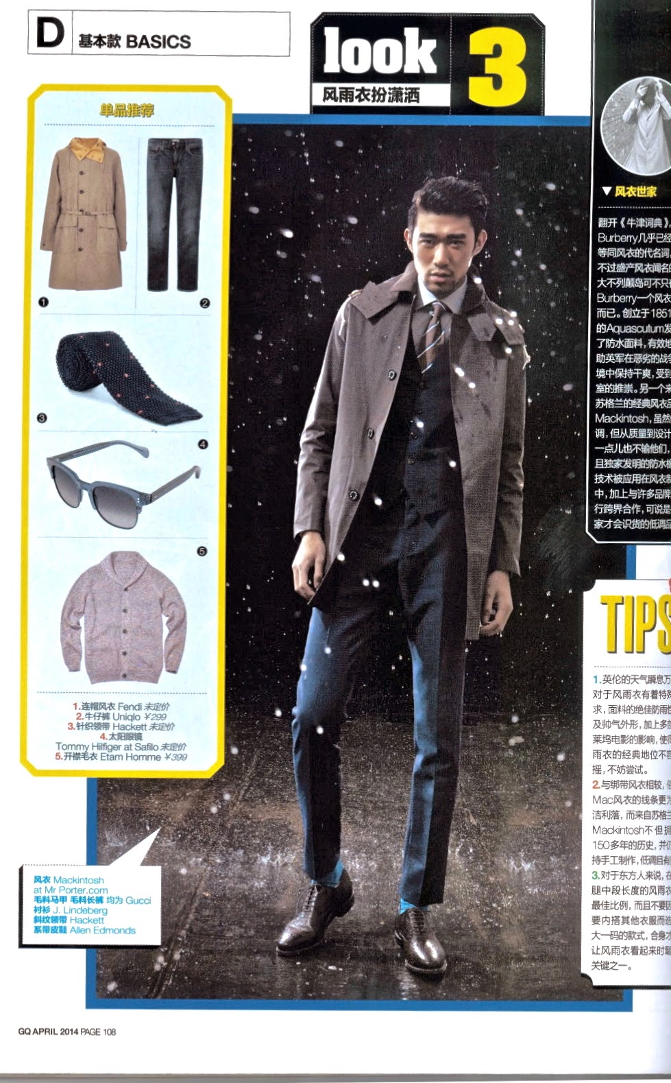 Hello everyone on Madison ave, Melrose place and everywhere in between. My name is Crespatrick one of Meg’s assistants. I am a mens wear enthusiast. The craftsmanship of clothing and the art of style are active passions of mine. I’m always curious of why things are designed the way that they are and why people dress the way they do. I recently took a trip to China where I spent two weeks exploring the culture and people daily, noting the interpretation of fashion in the Far East. I saw influences of Japanese streetwear and lots of active wear. The younger generation is highly influenced by Italian sprezzatura lifestyle as well as Britan’s dandyism, with the occasional American rugged worker wear. Reading all kinds of menswear magazines is one of my favorite ways to stay up to date in fashion. While I was in China, I picked up a few Chinese fashion magazines including GQ China. I saw similar trends to the states and what they chose to highlight as well as others that Americans do not par take in. I wanted to take the rest of this post to highlight and compare a few current trends here in the states as well as in China.