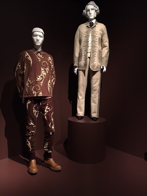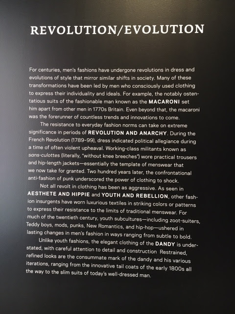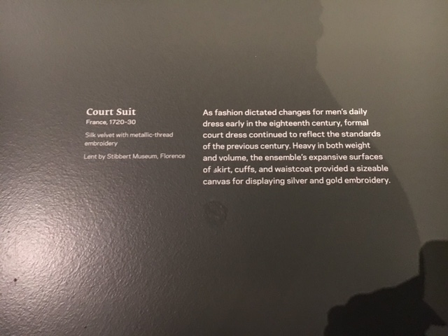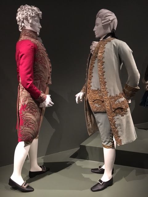 Below is a photo montage from Reigning Men highlighting men’s fashion and it influences through the ages. My favorites were the French court styles from the 18th century. The gold and silver metallic embroideries that donned coats and vests were heavy in weight as well as detail and showcased the fashion formality and intricacy of the time period.