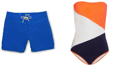 links: Surf Trunks, Rodez Color-Block Bandeau