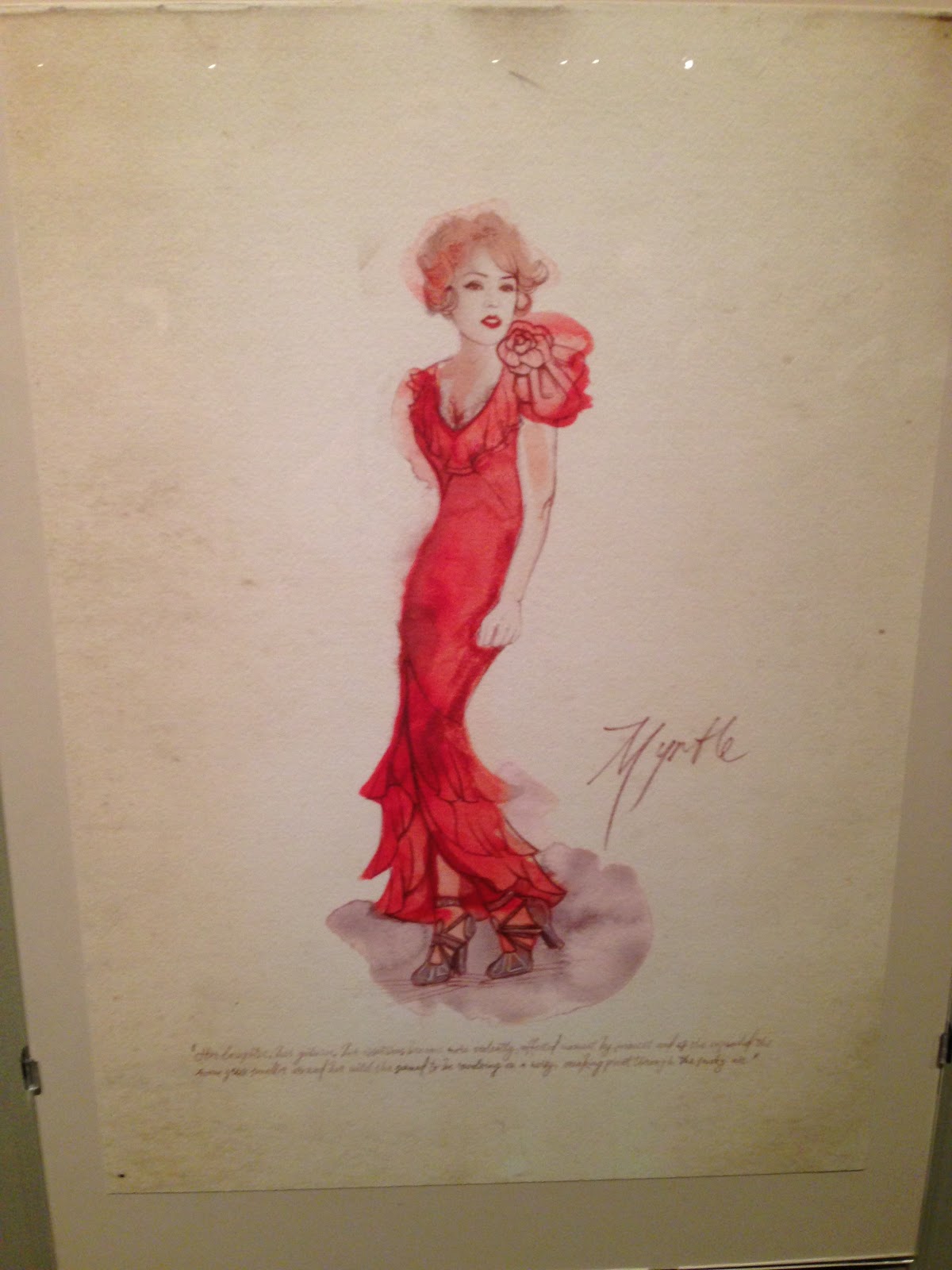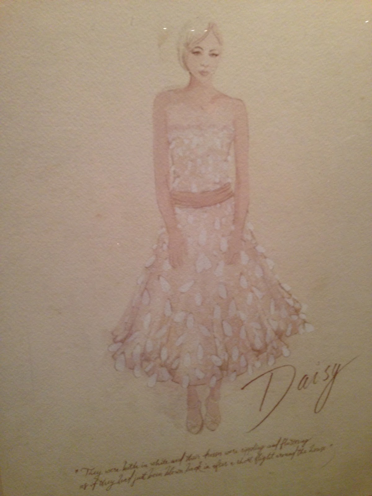 I had the privilege of attending The Great Gatsby Preview Party. It was a small, 20’s style cocktail event at The Century Guild with only about 40 people in attendance. Among the few, however, were writer/producer/director Baz Luhrmann and his wife as well as brilliant (and Academy Award©-winning) set/costume designer to the film, Catherine Martin (!). The night was a kick-off to Martin’s exhibition that will be held in the gallery until June 1st. Lavish in her exquisitely drawings and absolutely stunning costumes, this is the perfect preview for the film itself.